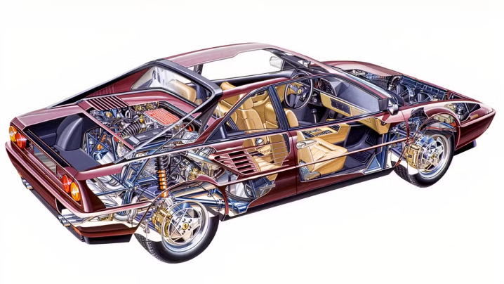 1988年推出的Mondial t则迎来终极进化:“t”并非代表涡轮增压(turbo),而是指全新的发动机布局——发动机从横向布置改为纵向布置,变速箱仍保持横向,形成“T”字形布局。这一调整让发动机位置显著降低,优化了车身重心与重量分配,操控性能大幅提升。同时,发动机排量进一步扩大至3.4升,最大功率接近300马力,零百加速时间压缩至6秒级,彻底摆脱了“性能孱弱”的标签。