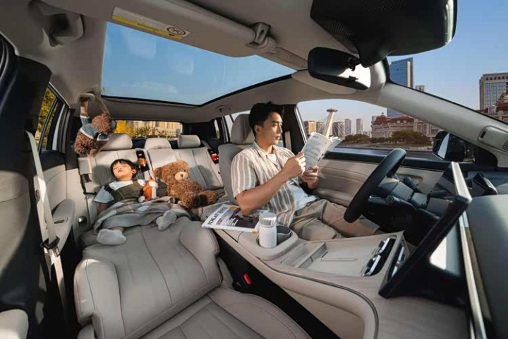 静谧性表现同样出色,通过发动机黄金悬停技术,启动和停机抖动大幅降低,怠速充电时车内噪音仅40分贝,时速120km/h条件下车内噪音优于部分进口豪华纯电SUV,获得“静音之星AAA”认证。